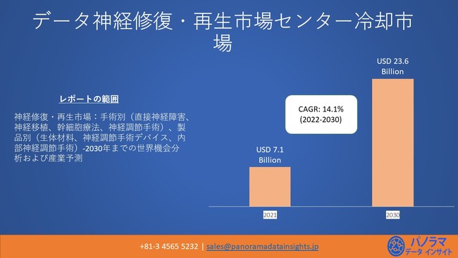 神経修復・再生の世界市場規模は2021年に71億米ドル、2030年には236億米ドルに達すると予測され、2022年から2030年までの予測期間中に年平均成長率(CAGR)14.1%で成長するとされています.