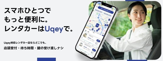 「Uqey」はレンタカーの予約・解錠・返却までスマホで完結するアプリです。 アプリから24時間いつでもレンタカーの検索・予約・解錠・返却・精算ができます。
