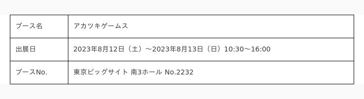コミックマーケット102企業ブース「アカツキゲームス」出展概要