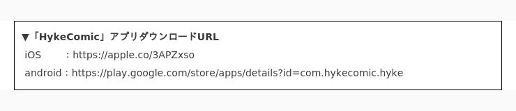 ▼「HykeComic」アプリダウンロードURL