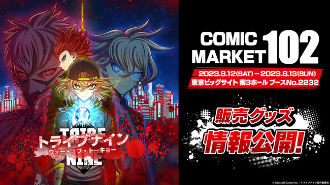 株式会社アカツキゲームス(本社:東京都品川区、代表取締役:戸塚佑貴、株式会社アカツキ100%子会社)は、トゥーキョーゲームス株式会社(本社:埼玉県所沢市、代表取締役CEO:小高和剛、以下トゥーキョーゲームス)との共同プロジェクト『TRIBE NINE(以下トライブナイン)』において、コミックマーケット102で販売するグッズ情報を公開したことをお知らせいたします。