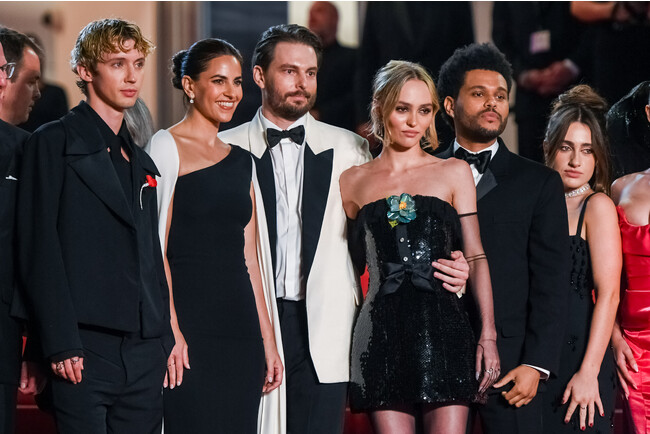 映画「The Idol」のレッドカーペットにて、サム・レヴィンソンは2023-24年秋冬コレクション ‘ブラックタイ’ のルックを着用。アシュリー・レヴィンソンは2023年フォールコレクション ‘アーバン リヴィエラ’ のドレスを着用