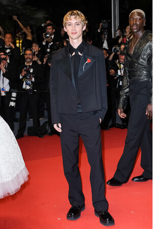 映画「The Idol」のレッドカーペットにて、クリエイティブ ディレクター、ピエールパオロ・ピッチョーリがトロイのために特別にデザインしたルックを着用