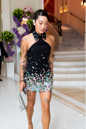 ショパール主催のディナーにて、2023年春夏コレクション ‘アンボクシング’ のルックを着用
