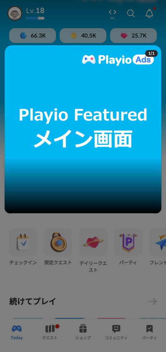 Playioアプリ内に設置された全7ヵ所の広告バナー枠において、ゲームタイトルのクリエイティブを最優先で表示できるプロモーションメニューです。