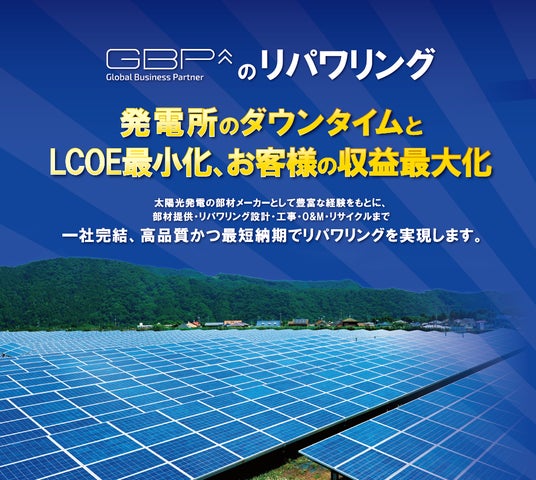 「太陽光発電のリパワリングならGBP」をテーマに、太陽光発電の部材メーカーとして豊富な経験、技術力、柔軟性を活かしたワンストップリパワリングソリューションをご紹介します。近年、2012年から始まったFIT制度により、太陽光発電所の設置が急速に拡大しましたが、当初建設された多くの設備が稼働から10年以上を迎えつつあります。そのため、老朽化や発電効率・出力の低下が課題となっており、既存設備の改修や高効率パネルへの更新を行う「リパワリング」の需要が今後さらに高まると予測されています。また、収益を最大化させることも課題となっています。