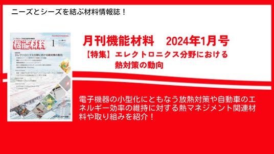 化学・エレクトロニクスなどの技術・市場動向レポート発行やセミナー開催を行う、株式会社シーエムシー出版(本社:東京都千代田区、代表:辻賢司)は、雑誌『月刊機能材料2024年1月号』を1月7日に発売します。特集は「エレクトロニクス分野における熱対策の動向」です。