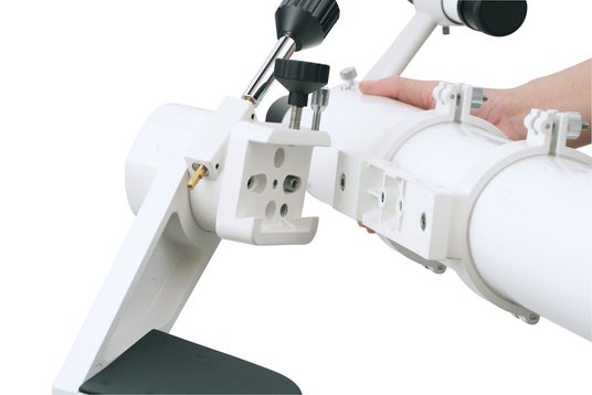 鏡筒は手で持って自在に動かすことができ、手を離したらその位置に固定されるフリーストップ式。見たい星の方向へ鏡筒をスムーズに向けられる機構で、ストレスのない快適な操作性を実現しています。