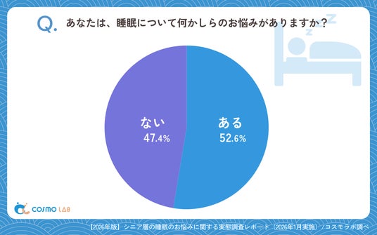 本調査では、睡眠の悩みが「ある」(52.6%)と回答した層が過半数を占めました。そのため、多くのシニアにとって、睡眠が日常的な課題となっている様子がうかがえました。