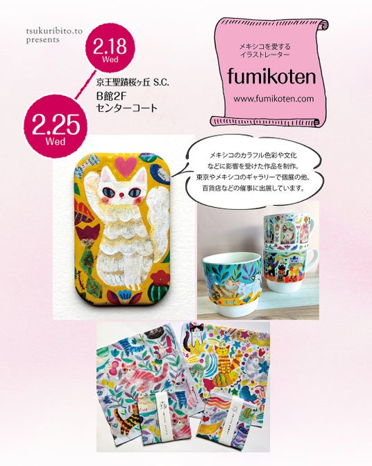 第2部は京王アートマン初登場の作家さん、猫もとろけるあんま棒と台湾雑貨の「SANN」さん、動物画家「金田花季」さん、メキシコを愛するイラストレーター「fumikoten」さんが加わります!
