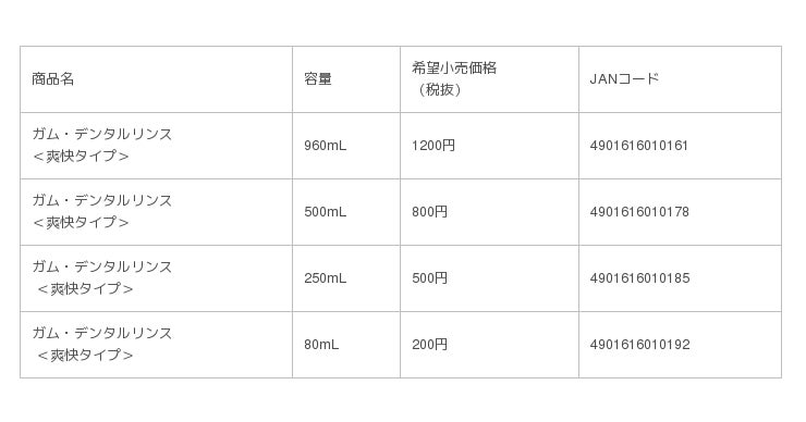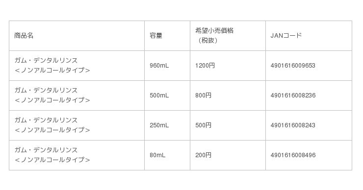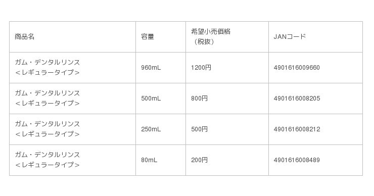 「ガム・デンタルリンス シリーズ」は2つの殺菌剤のダブルパワーで、瞬間殺菌力・長時間バリア機能(長時間殺菌)を強化し、さらに炎症を防ぐことで、より効果的に歯周病を予防できます。また、3種類の識別性を高めたパッケージに改良し、発売します。
