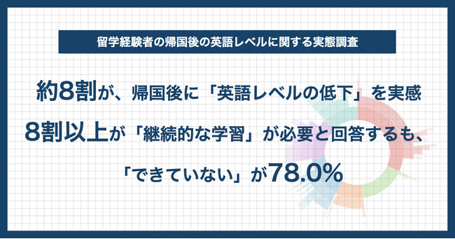 約8割が、「帰国後に英語レベルが低下した」と回答