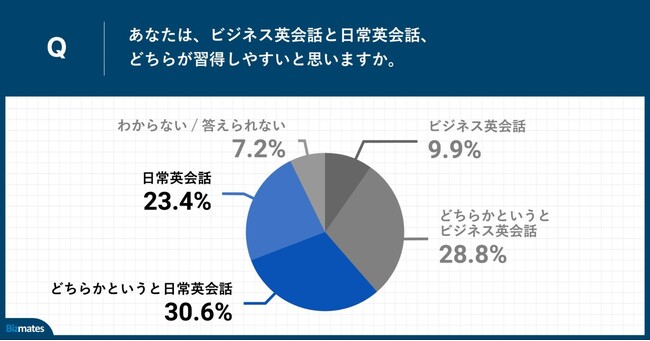 半数以上が、「ビジネス英会話よりも日常英会話の方が習得しやすい」と回答