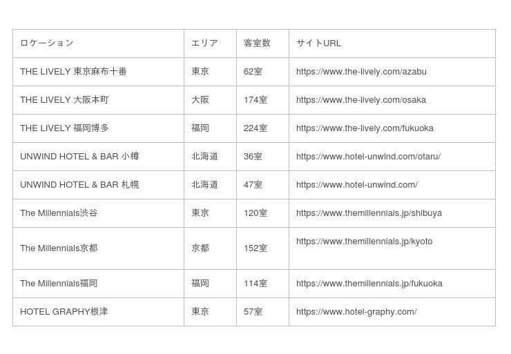 STAY:ライフスタイルホテル13棟約1235室を運営。
