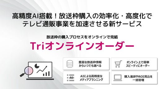 STREET HOLDINGSのグループ会社で、企業のダイレクトマーケティングを支援する株式会社トライステージ(本社:東京都港区、以下、当社)は、 豊富な放送枠情報や高精度なAIメディアプラン、考査状況や購入進捗など、TVインフォマーシャルの放送枠購入にあたって必要なデータの閲覧と発注・管理がオンラインで完結できる新サービス「Triオンラインオーダー」の提供を開始します。