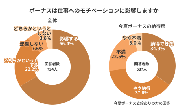 また今夏ボーナスの納得度については「納得できる」34.9%と「やや納得」37.6%を合算した72.5%が納得派の回答をする結果になりました。
