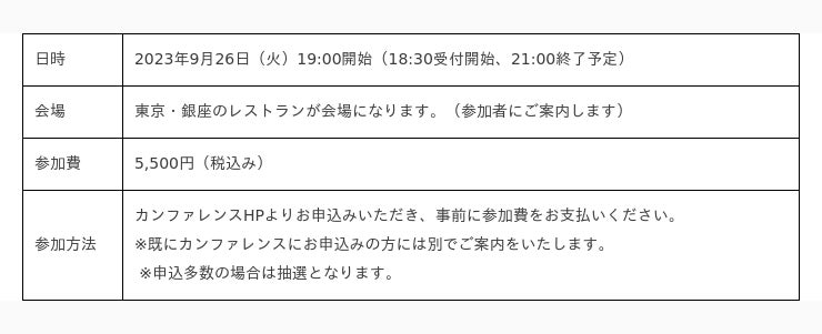 交流会には、「Mobility Transformation 2023」の登壇者の一部や、登壇者の所属企業の方々、当社のパートナー企業および当社社員などが参加予定です。ご関心のある方は、ぜひ参加をご検討いただければと思います。