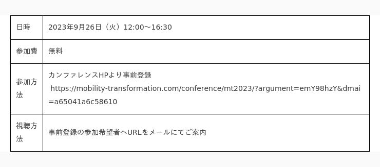 ●「Mobility Transformation 2023」タイムスケジュール