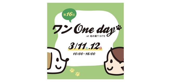 イベント:第16回 ワン One day at 柏の葉T-SITE日時:2023年03月11日(土)- 03月12日(日)10:00-16:00場所:柏の葉T-SITE備考:イベントは雨天中止となります。悪天候が予想される場合は、HPおよびInstagramにて前日15時までに開催可否をお知らせします。■イベント特徴