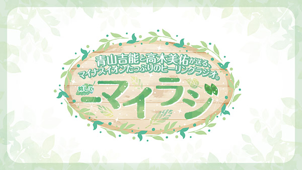「中島ヨシキのザックリエイト!!」番組内の企画から生まれたラジオ第2弾「青山吉能と高木美佑が送る、マイナスイオンたっぷりのヒーリングラジオ。略して、「−マイラジ」」。この番組では、ストレスの多い現代社会、言いたいことも言えない世の中で辛い思いをしている皆さんへ、2人が森林浴に来たかのようにマイナスイオンたっぷりに癒していきます。今回はゲストとして河野ひよりさんをお招きしてお送りします。