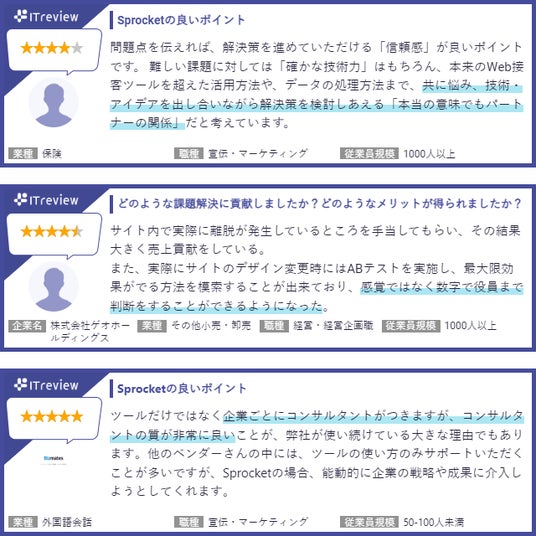 今回の受賞でSprocketは、評価対象となった7部門で特にユーザー満足度において高い評価を得ており、ABテストツール、ヒートマップツール部門では10期連続、Web接客ツール部門においては9期連続のLeader受賞となりました。