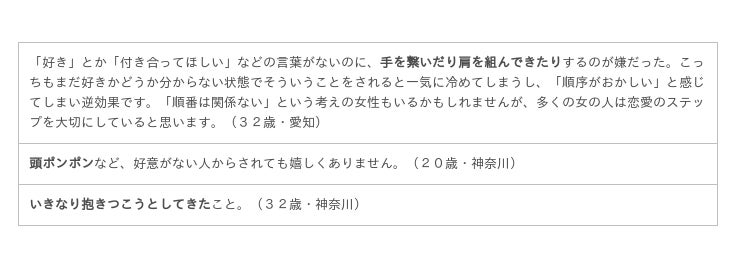次は、逆に効果的ではなかった男性のアプローチについても聞いてみました。