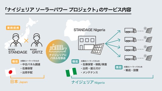 東京都港区に本社を置き、デジタル貿易プラットフォームの開発・提供を手がけるスタートアップ企業の株式会社STANDAGEと、東京都新宿区に拠点を持ち、非FIT太陽光発電所開発および系統用蓄電池開発を行うスタートアップ企業の株式会社GRITZは、中古太陽光パネルをナイジェリアへ輸出する新たなビジネスにおいて業務提携を行うことを発表いたします。