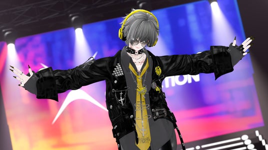 スタッズや安全ピンでカスタムされたジャケットに、グレーのインナーを合わせたハードなスタイルは、アバター改変への情熱とロックスター的カリスマ性を同時に感じさせます。