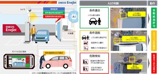 ENEOS株式会社(以下、ENEOS)は、セルフサービスステーション(以下、セルフSS)における給油時の安全性確保と運営効率化を目的として、AI自動給油監視システム(以下、本システム)の導入を開始いたします。