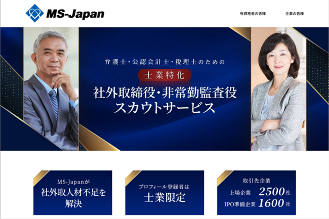 株式会社MS-Japan(本社:東京都千代田区 代表取締役社長:有本隆浩/以下MS-Japan 証券コード:6539)は、1月中旬より「【士業特化】社外取締役・非常勤監査役スカウトサービス」を開始することをお知らせいたします。