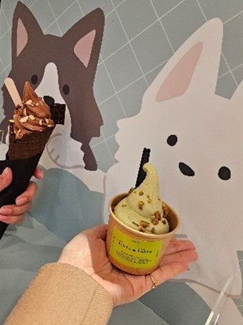 フレンチガーリーとネオンをテーマに制作しました。ミラー×リボンのデザインを施したパネルではスイーツと一緒に自撮りすることを意識し、ハートのネオンのパネルには、周囲に白いモコモコのモールを付け、立体的に見せています。パネルの派手に装飾せず、スイーツを映えさせられるような石灰を意識しました。