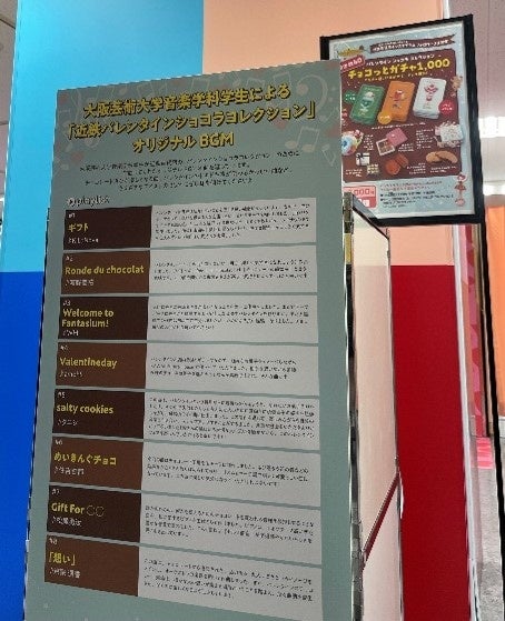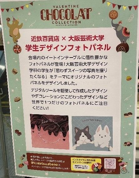 大阪芸術大学(学校法人塚本学院 / 所在地:大阪府南河内郡 / 学長:塚本邦彦)は、株式会社近鉄百貨店(所在地:大阪府大阪市/代表取締役社長執行役員:秋田 拓士)との産学連携プロジェクトとして、あべのハルカス近鉄本店にて開催中のバレンタインフェア「バレンタイン ショコラ コレクション2024」のバレンタインフォトパネルと、会場BGMの「バレンタインショコラコレクション」を制作いたしました。