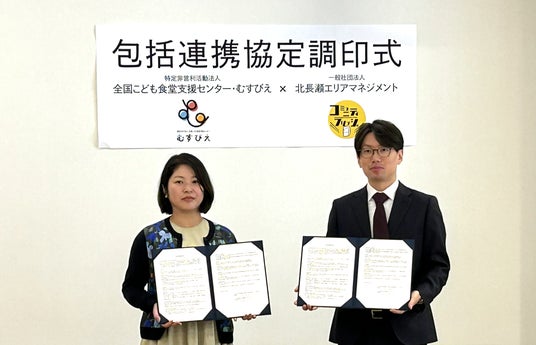 一般社団法人北長瀬エリアマネジメント(岡山市、代表理事:新宅宝)と認定NPO法人全国こども食堂支援センター・むすびえ(東京都渋谷区、理事長:三島 理恵、以下「むすびえ」)は、「世界食料デー」に向け、2025年10月15日、すべての子どもに食べることの喜びと地域との繋がりを作る協働体制の全国展開を目指し、岡山市北区北長瀬表町にて、包括連携協定を締結いたしました。