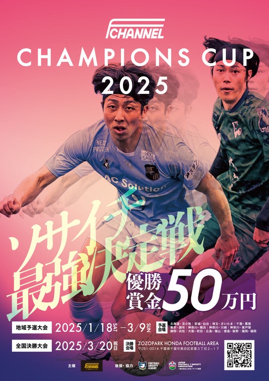 一般社団法人日本ソサイチ連盟(代表理事 馬場貴嗣、東京都多摩市、以下 日本ソサイチ連盟)は、F-CHANNEL CHAMPIONS CUP 2025への後援・協力が決定しましたのでお知らせいたします。