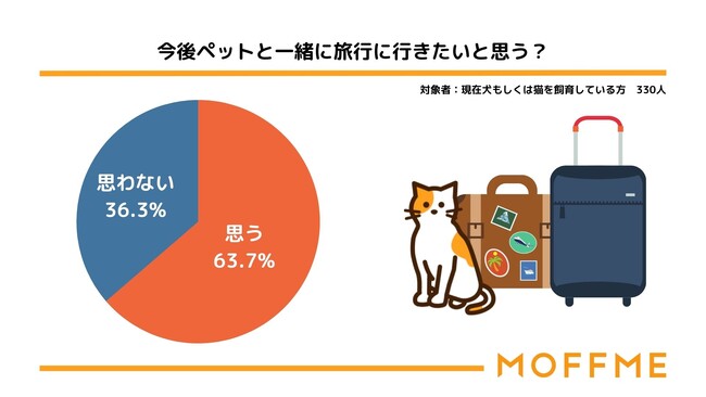 今回調査をした330人の内、今後ペットと一緒に旅行したいと思わない方が36.3%と、