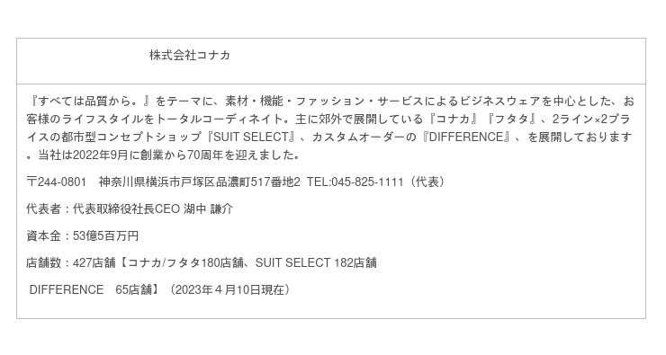 ※キャンペーンの詳細は、コナカ・フタタ公式Twitterをご覧ください。