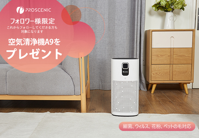 ノンフライヤー、空気清浄機、ロボットやコードレス掃除機などの研究開発、生産、販売を一体化した家庭用家電の総合メーカーであるプロセニック株式会社は、10月13日(木)19:00から10月19日(水)23:59まで約6日間にわたって、Instagramにおいて、人気商品A9空気清浄機が無料で抽選に参加できる特別企画を実施致します。