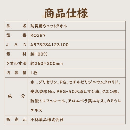 KO387 防災用ウェットタオル