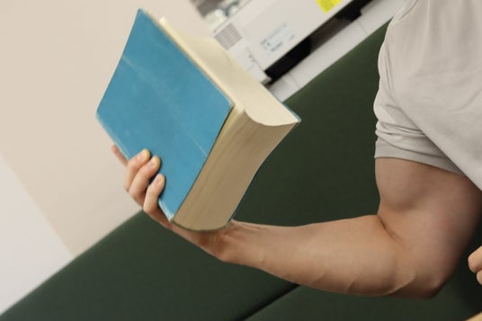 ▲辞書が筋力アップにつながるか検証中