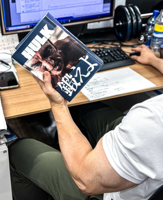 高速オフセットには約70名のクリエイターが在籍し、紙面の企画・編集・デザイン等を担当しています。今回「汗にも耐える!鍛えられるブックカバー」を考案したのは、週に6日ジムにも通っている、筋トレ大好きなグラフィックデザイナー。