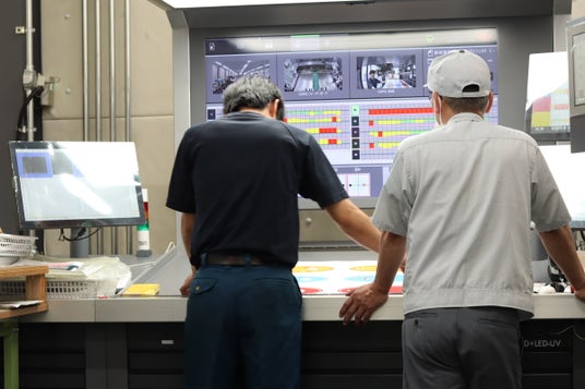 ▲インキの量を調整する印刷オペレーター