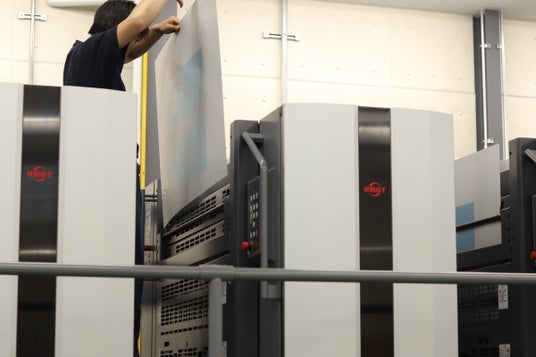 ▲印刷機に刷版を取り付ける様子