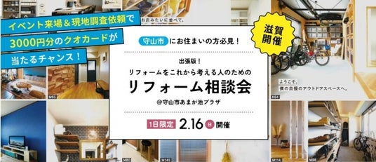 全国でリフォーム・リノベーション工事を年間6,500件以上手がける株式会社アートリフォーム(本社:大阪府吹田市、代表者:代表取締役社長 大本哲也、以下「アートリフォーム」)は、2025年2月16(日)に、守山市あまが池プラザにて【出張版】リフォーム相談会を開催致します。
