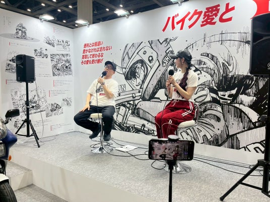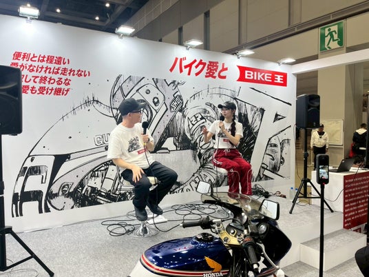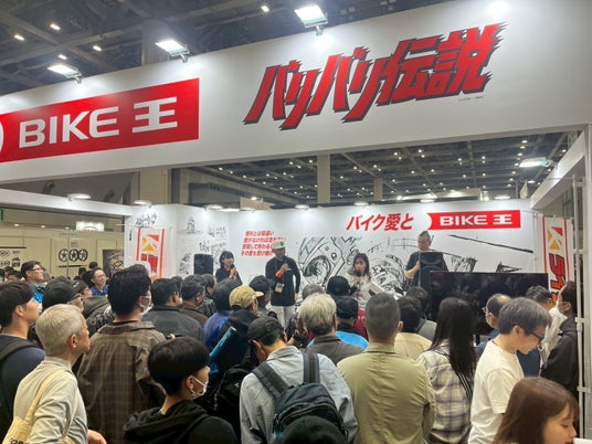 今回の東京モーターサイクルショーへの出展では、『バリバリ伝説』登場車両の展示前で世代の異なる来場者同士が会話を交わす様子や、トークショー、整備実演に足を止めて参加される来場者の姿が見られました。