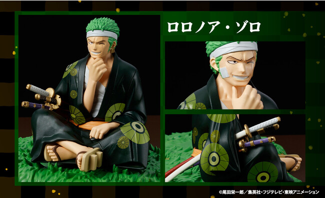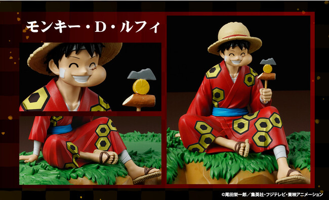 ~ルフィ、ゾロ、サンジ、ジンベエの服装や装飾、着物の柄を再現したフィギュアがセットになってプレミアムバンダイで予約開始~