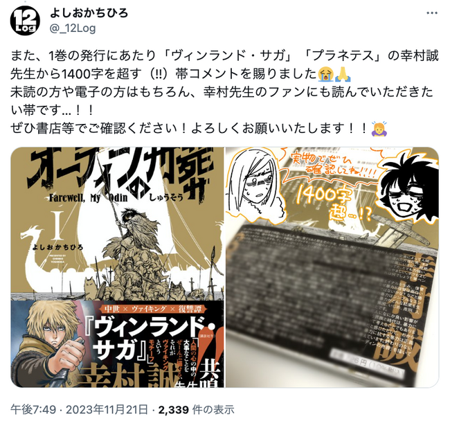 『ヴィンランド・サガ』幸村誠先生が推薦文を寄せており、