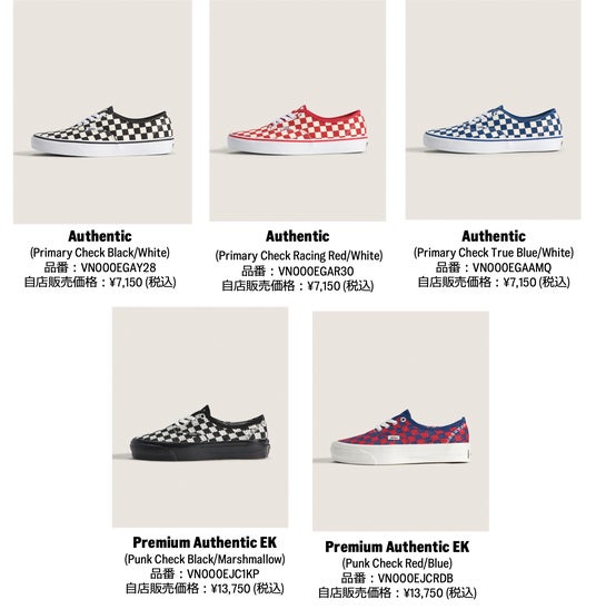 ビジュアルでは、3月にローンチしたAuthentic Checkerboard Collectionに加え、4月2日(木) より販売開始するレトロな雰囲気を醸し出す2トーンカラーなど、多彩なカラーウェイを着用。