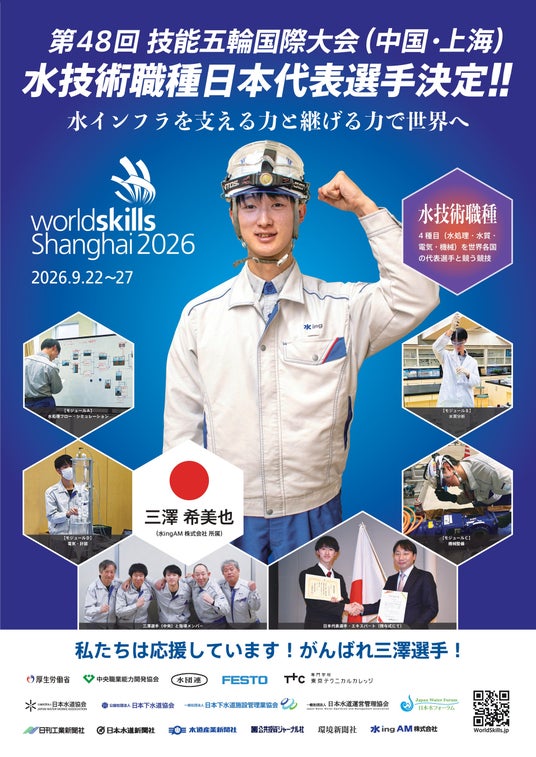 水ingグループは、技能五輪国際大会「水技術」職種への挑戦による次世代の現場技術者や指導者の育成を通じ、世界トップレベルである日本の水インフラを守り続けることに貢献してまいります。