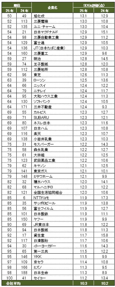SDGs企業ランキング51~100位 出典:「企業版SDGs調査2025」(ブランド総合研究所)