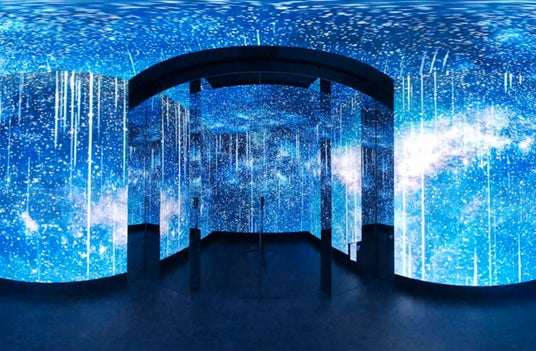 ・扉面を鏡面仕上げにすることで360度映像の世界を演出し、